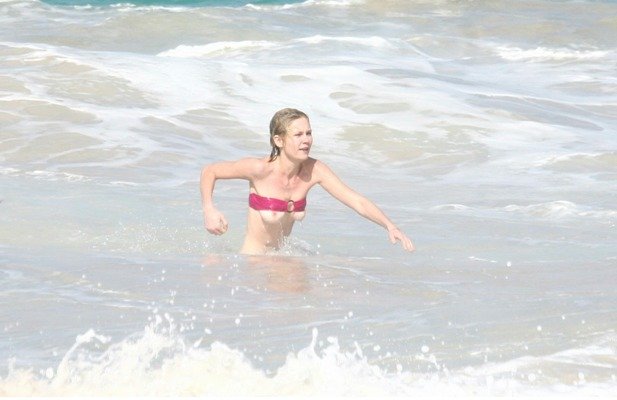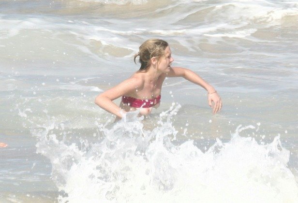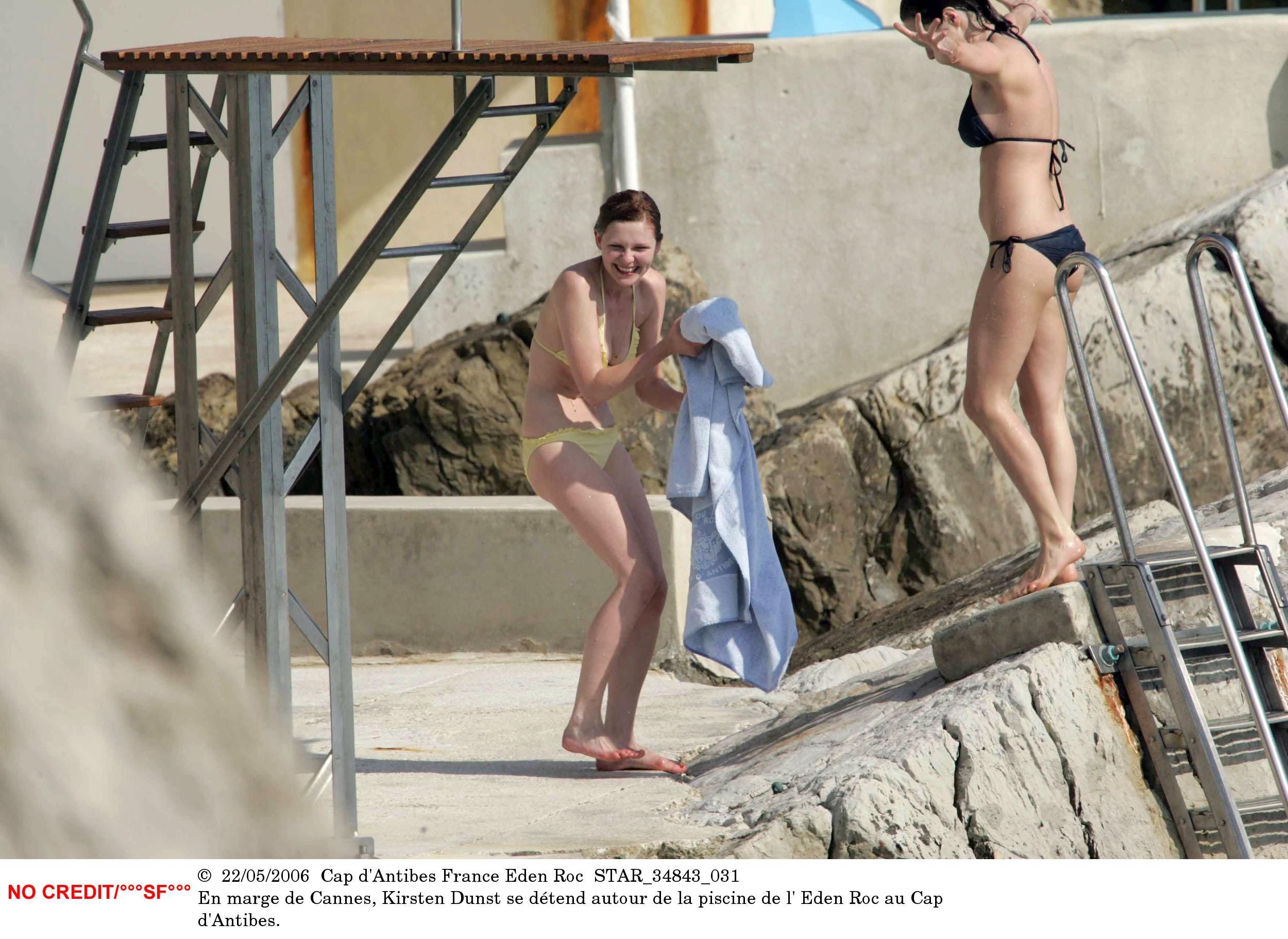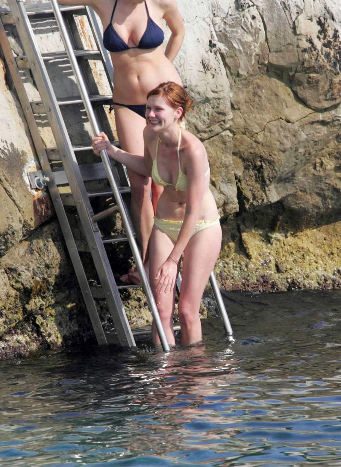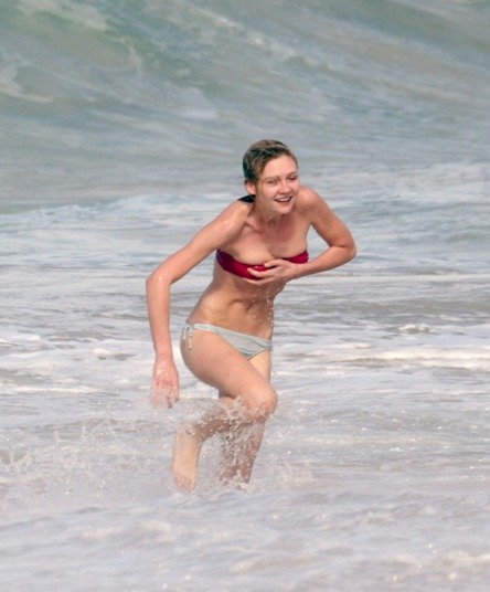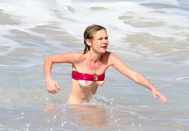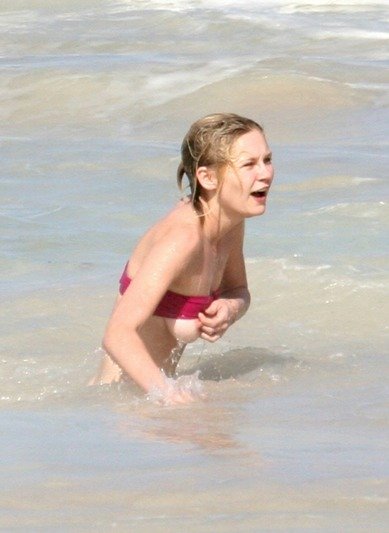 Kirsten Dunst in a wet swimsuit