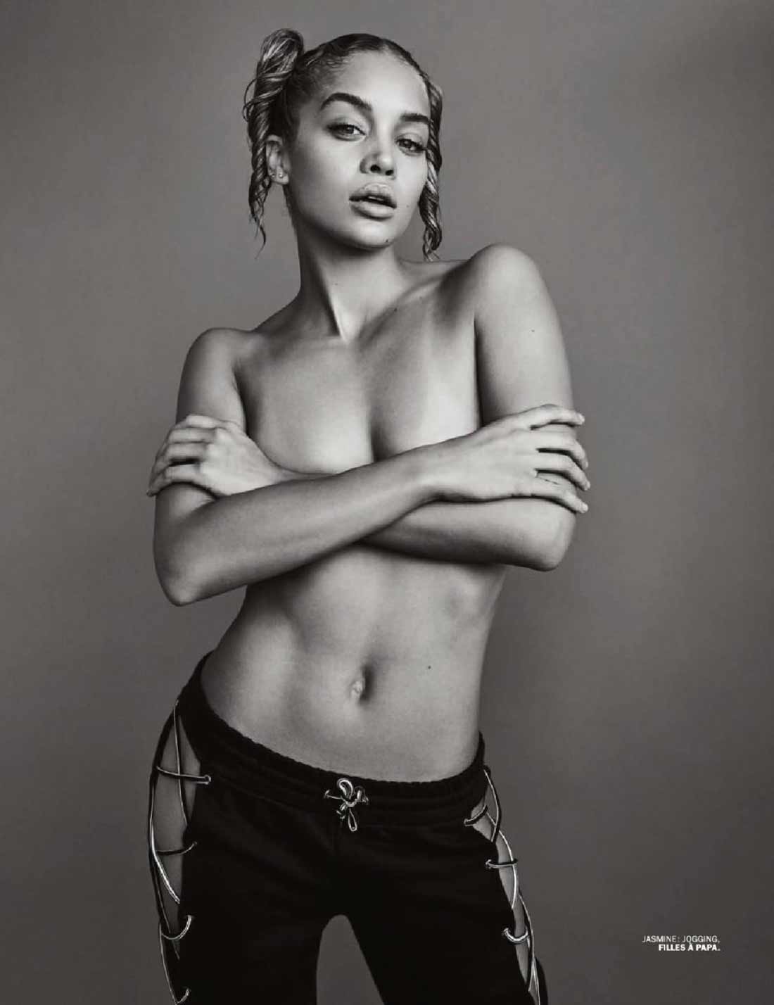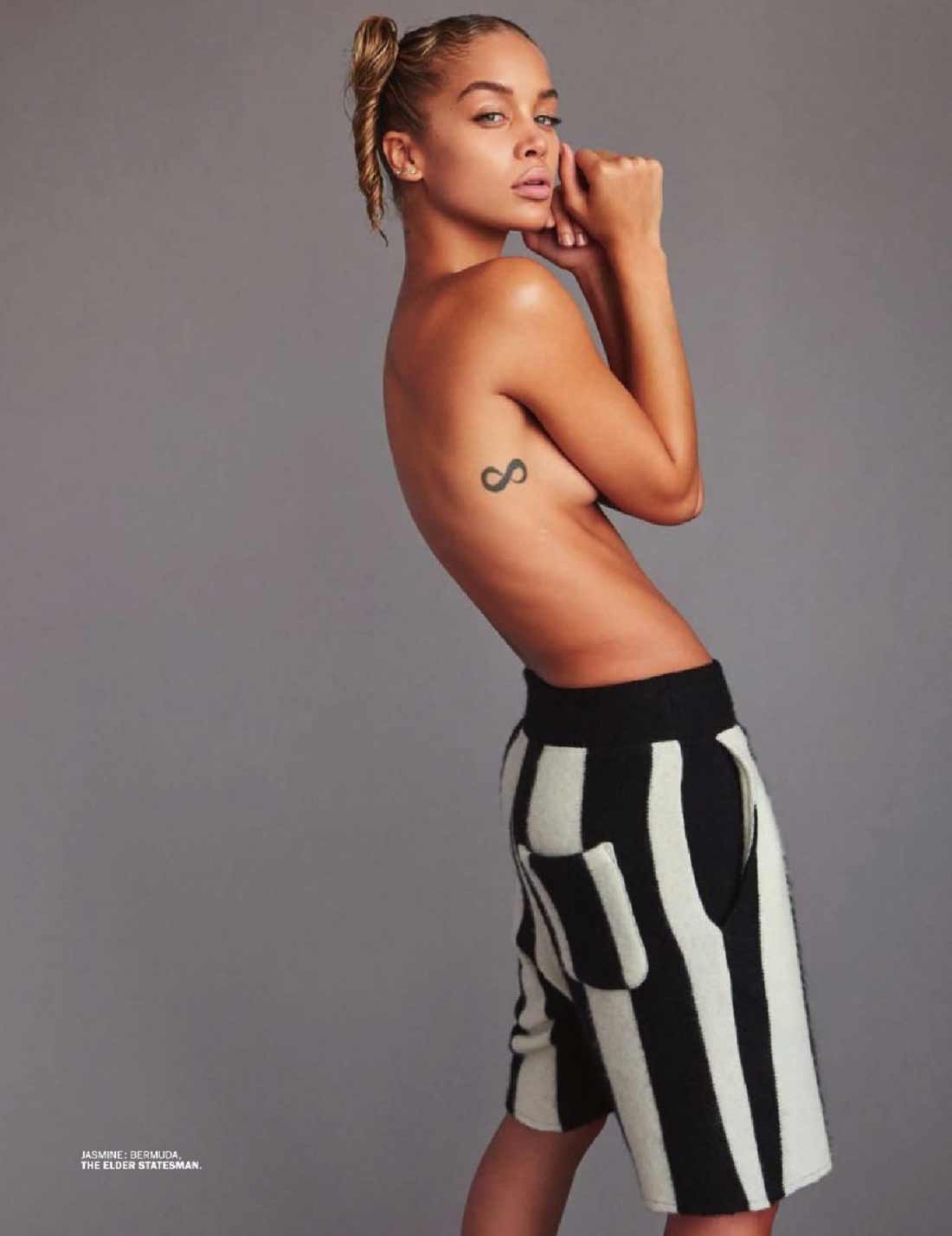 Jasmine Sanders poses topless and shows off butt